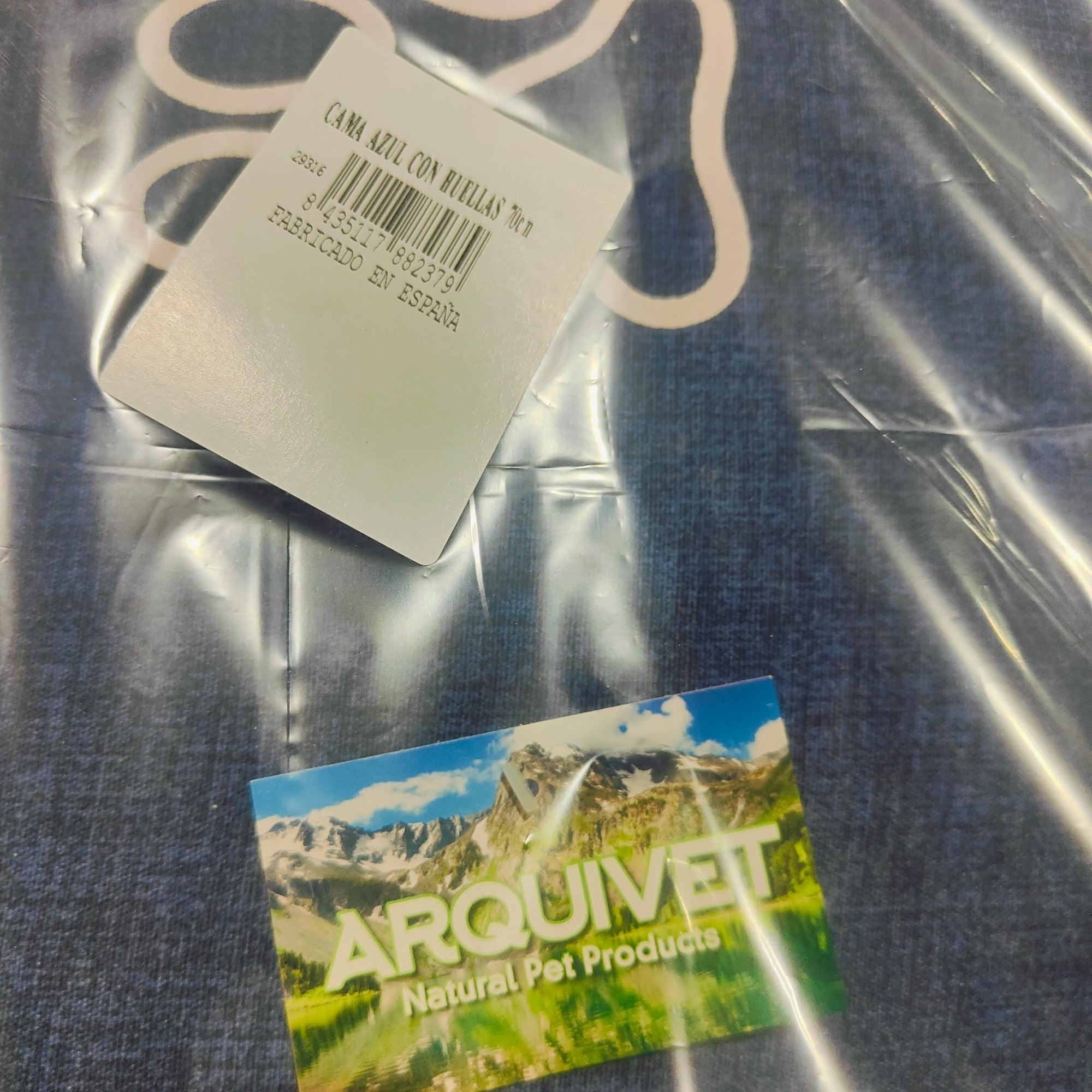 Cama cuadrada azul con huella y ribete 70x55x19 cm. -